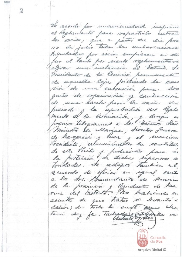 Acta de constitución da Sociedade de Pósito de pescadores de Foz. Cofradía de Pescadores