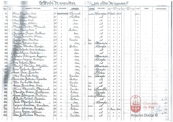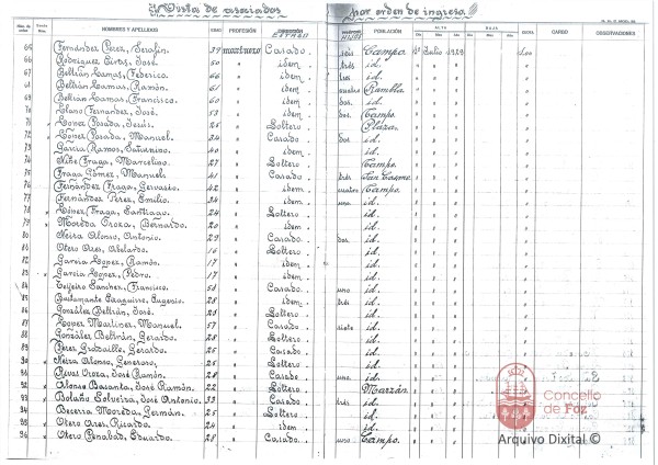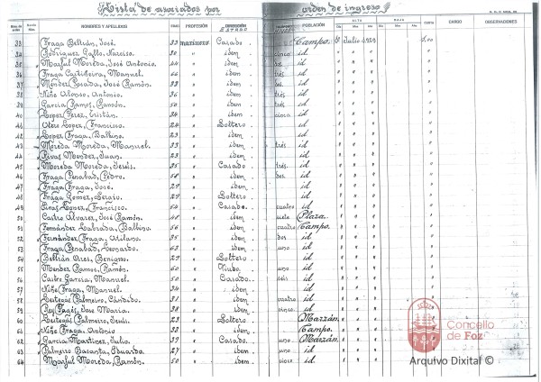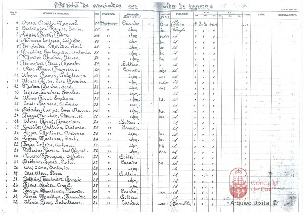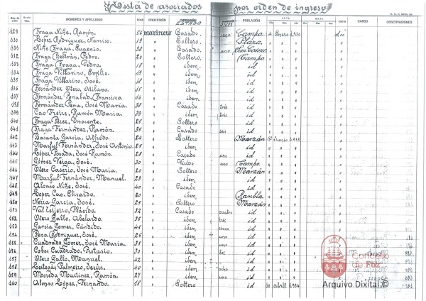 Listaxe de socios por orde de ingreso. Cofradía de Pescadores