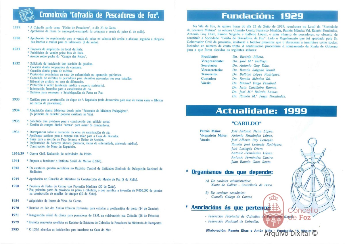 Díptico do 70 aniversario da Confraría de Pescadores.