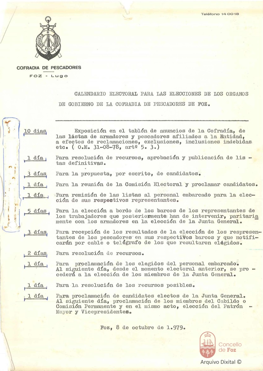 Calendario electoral para as eleccións dos órganos de goberno da Cofradía de Pescadores