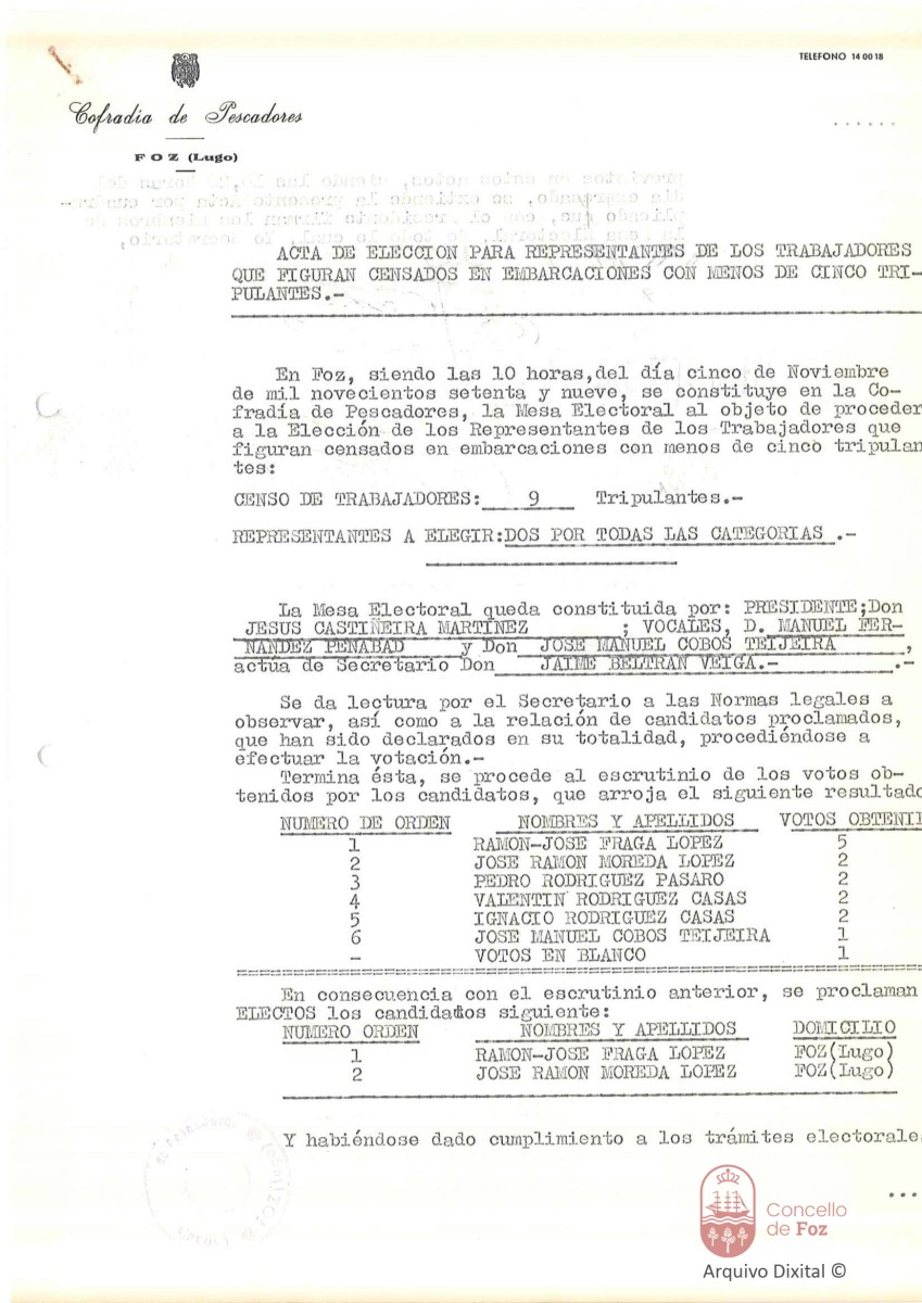 Acta de elección para representantes dos traballadores que figuran censados en embarcacións de menos de cinco tripulantes