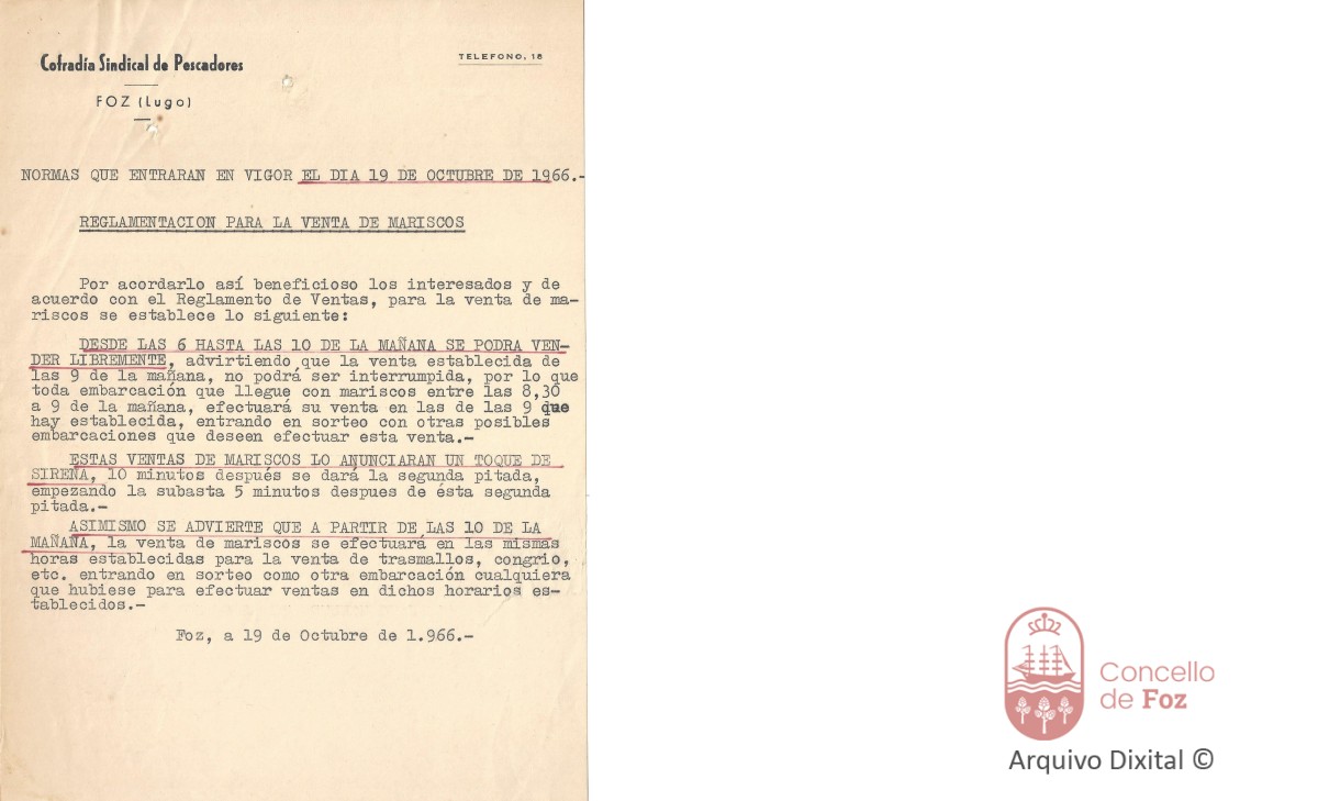 Normas que entran en vigor o 19 de outubro de 1966 no relativo á venda de marisco.