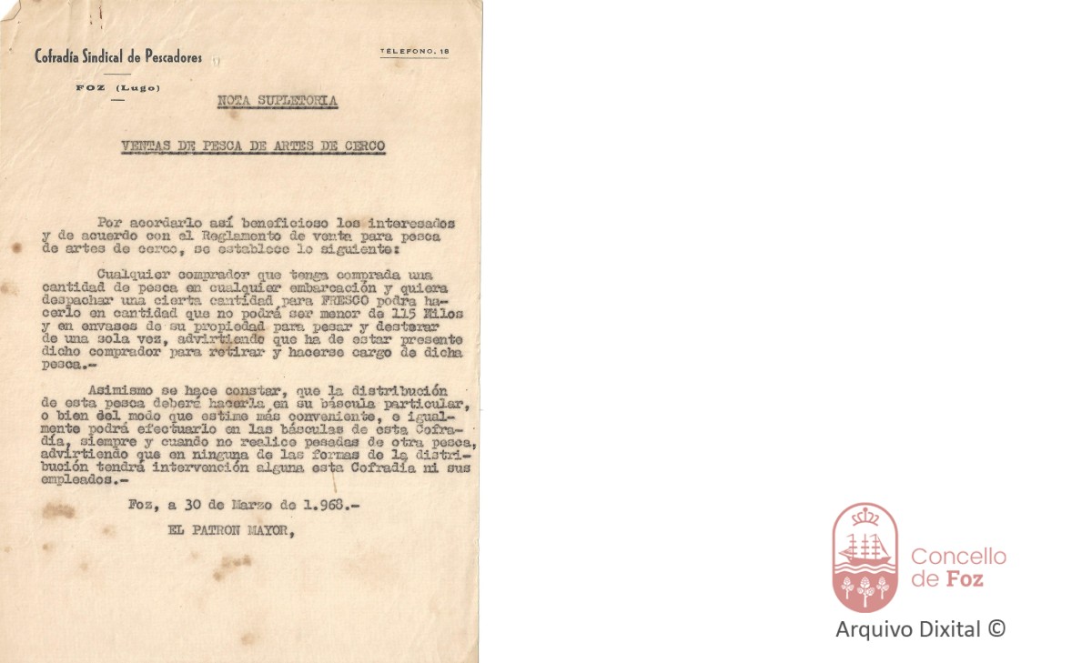 Nota supletoria , vendas de pesca nas artes de cerco.