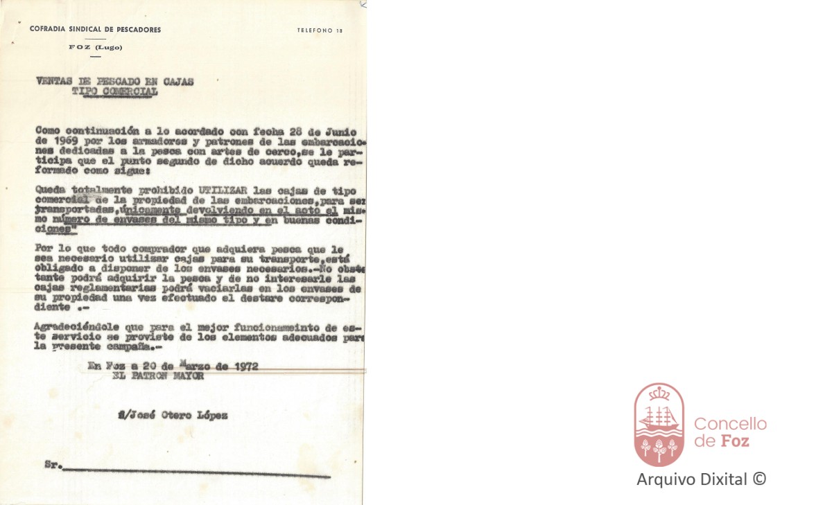 Documento sobre a venda de peixe en caixas tipo comercial