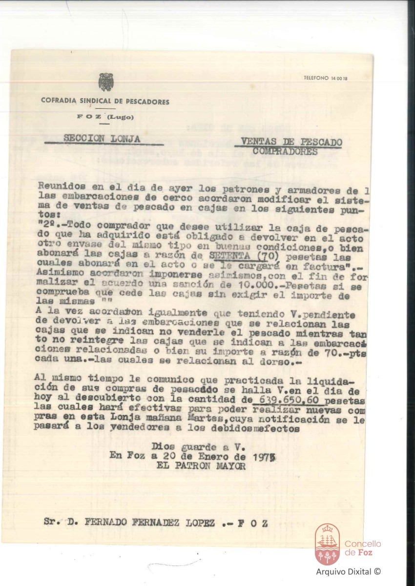 Acordos para a modificación do sistema de venda de peixe en caixas.