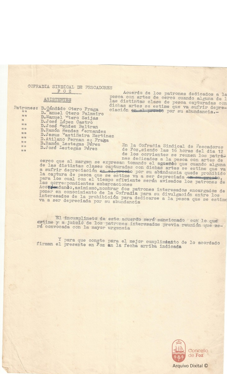 Acta de acordo dos patróns dedicados á pesca con artes de cerco.