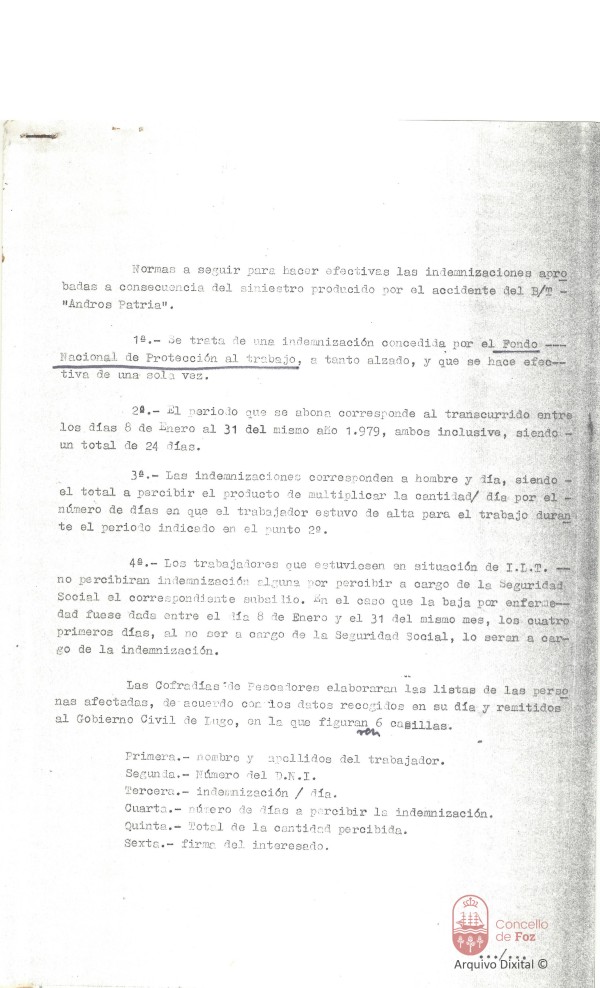 Normas para facer efectivas as indemnizacións aprobadas, consecuencia da marea negra causada polo petroleiro Andros-Patria Cofradía de Pescadores