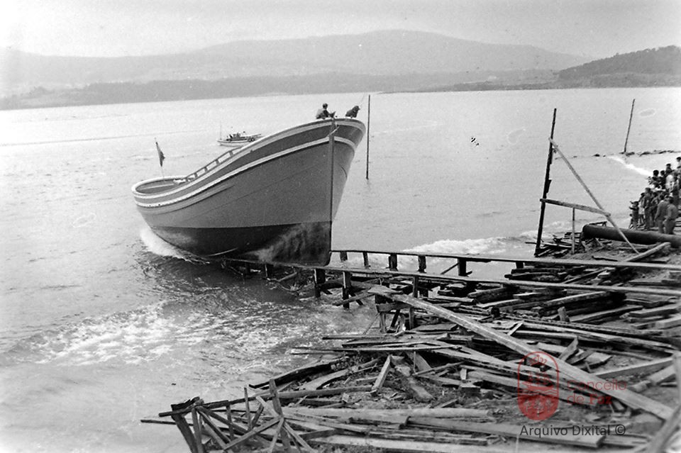 Estaleiro de Santiago da Puebla. Botadura dun barco. Tupide.
