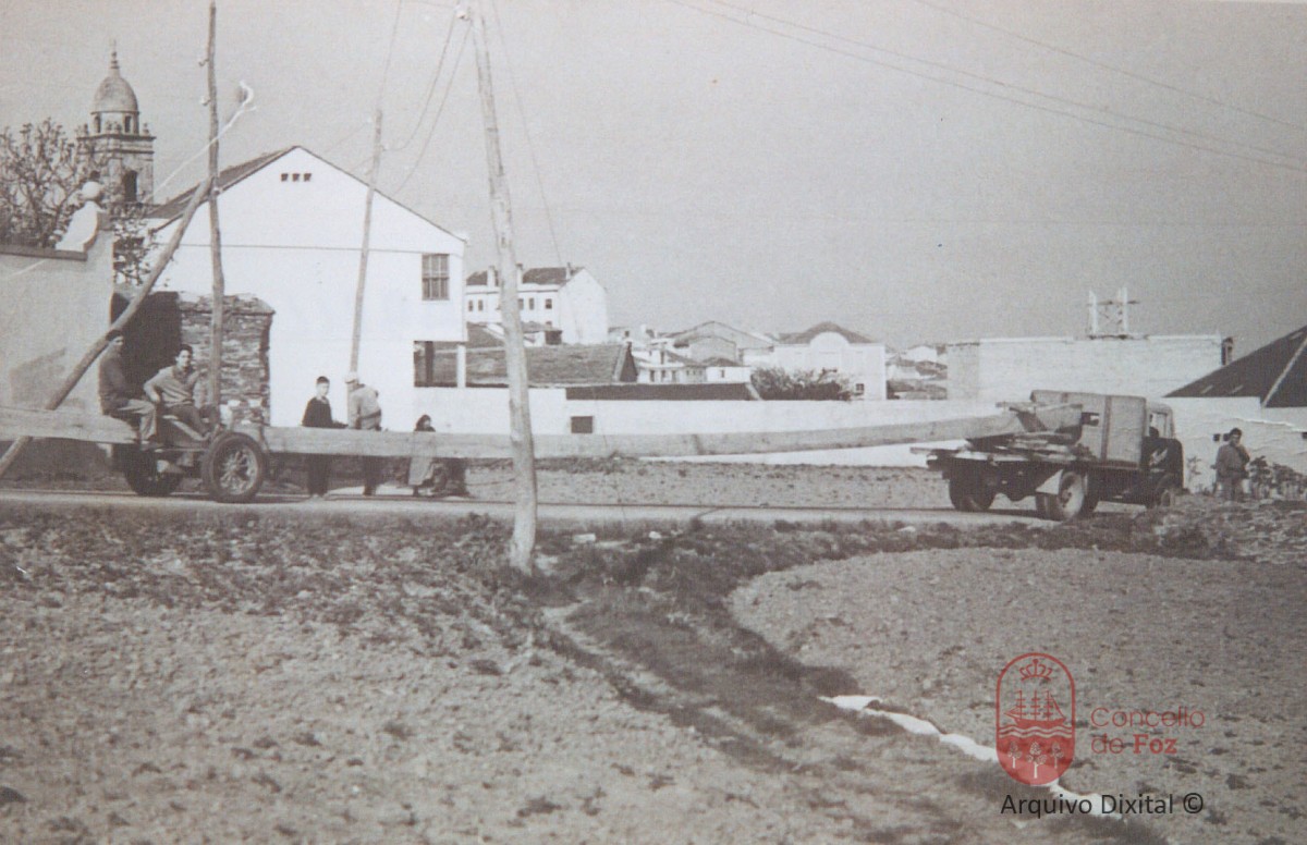 Nécega baixando unha quilla para o seu estaleiro, pola rúa Valle Inclán.