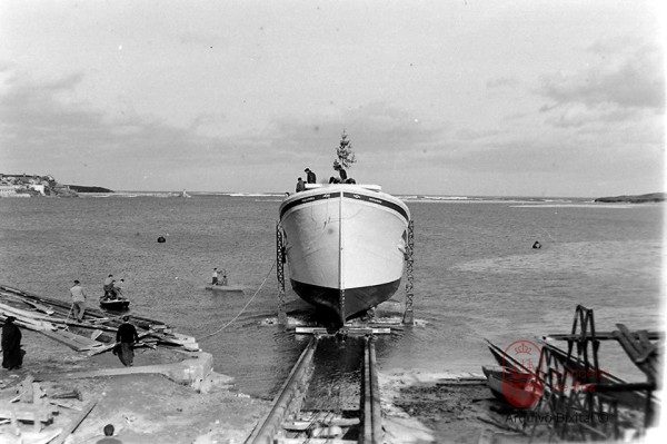 Estaleiro de César Beltrán e irmáns. Botadura do Rosariño. Malates. Estaleiros e Talleres