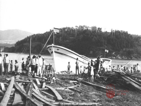 Estaleiro de Suso Nécega. Botadura de lancha. Malates Estaleiros e Talleres
