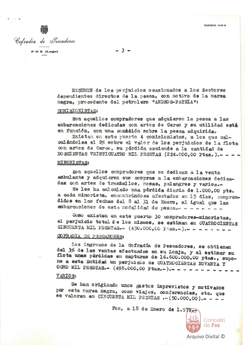Resumo dos danos ocasionados aos sectores dependentes diréctos da pesca pola marea negra causada polo petroleiro ANDROS-PATRIA
