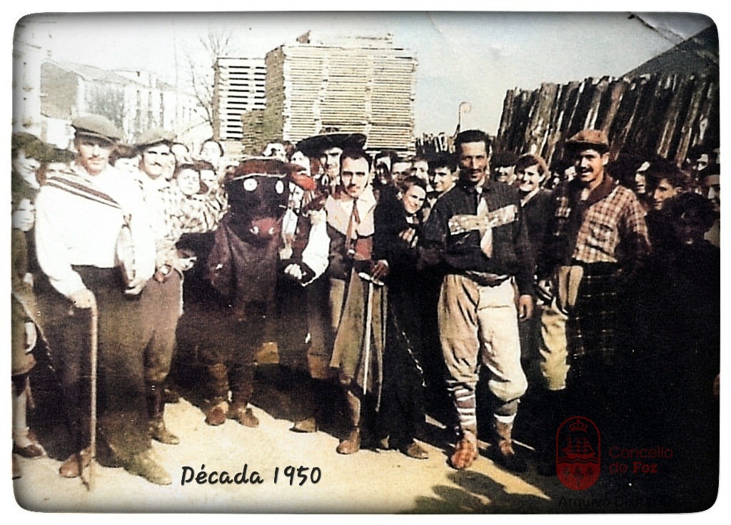 Entroido. Representación da corrida de toros na praza Conde de Fontao.