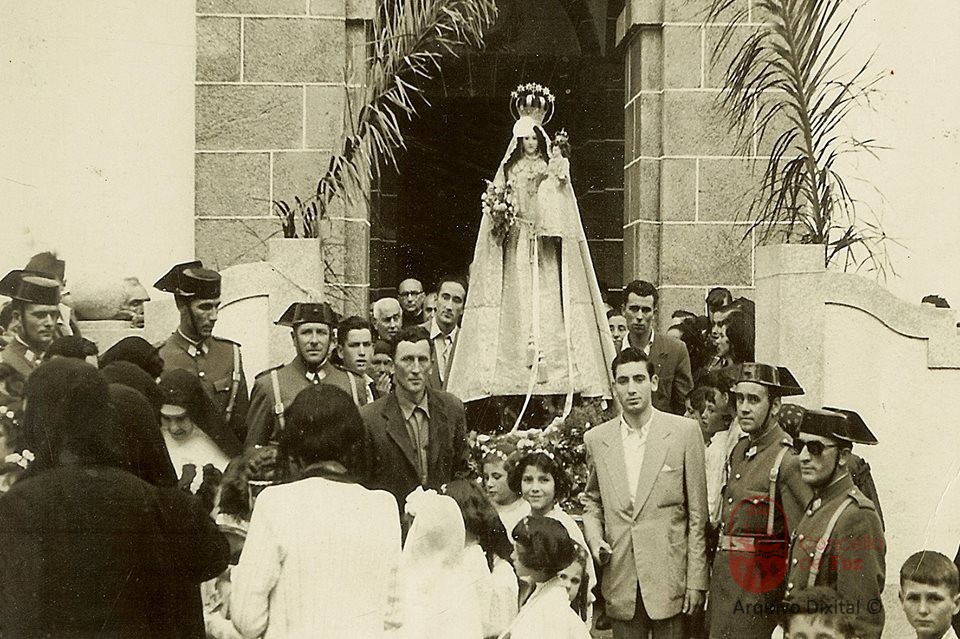 Portando a Virxe de diante a atrás, comezando pola esquerda: Isidro de Fondós, Manolo de Florencio, Pepe de Torna e Antonio de Servando.