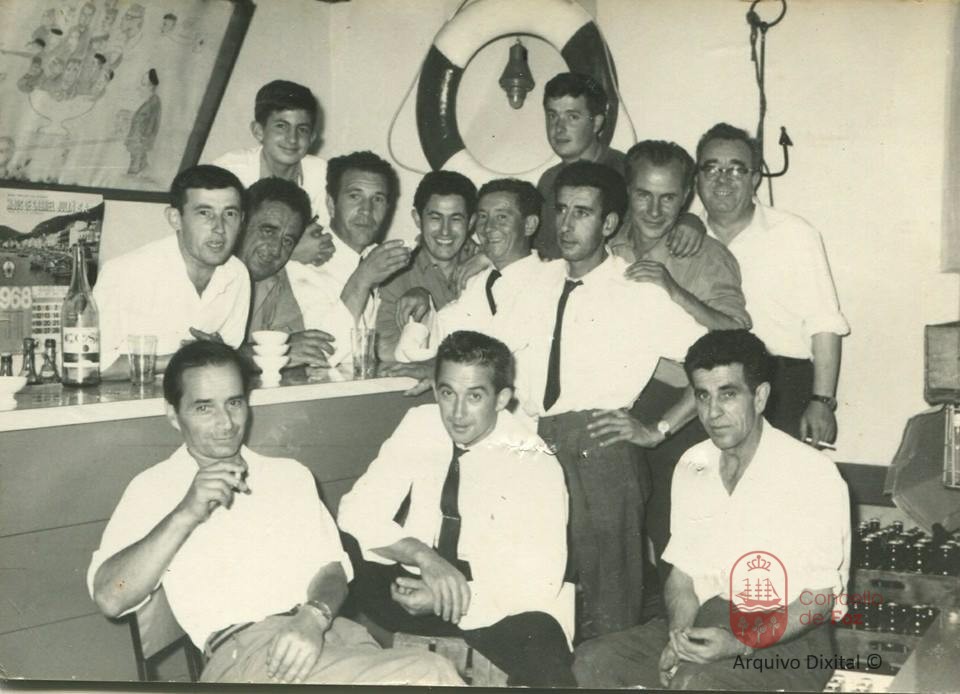 Palmeiro, Arturo, Minguín, Antonio, o Cora e o grupo de camareiros do Lar.