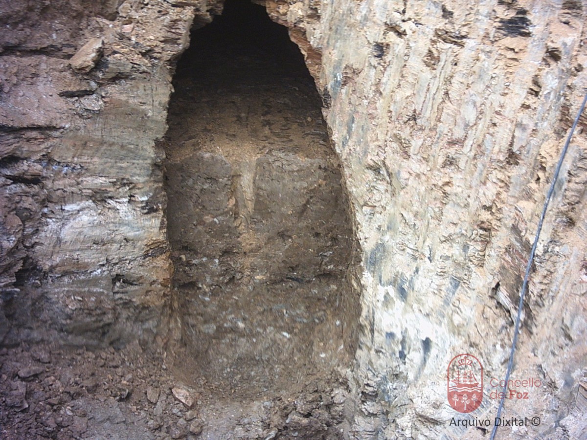 A cova medía  duns 1,80 metros a 2,00 metros de altura. A parte de abaixo que vedes tapada pola porcalla e a auga que co paso dos séculos lle foi entrando polas ventás de respiro.