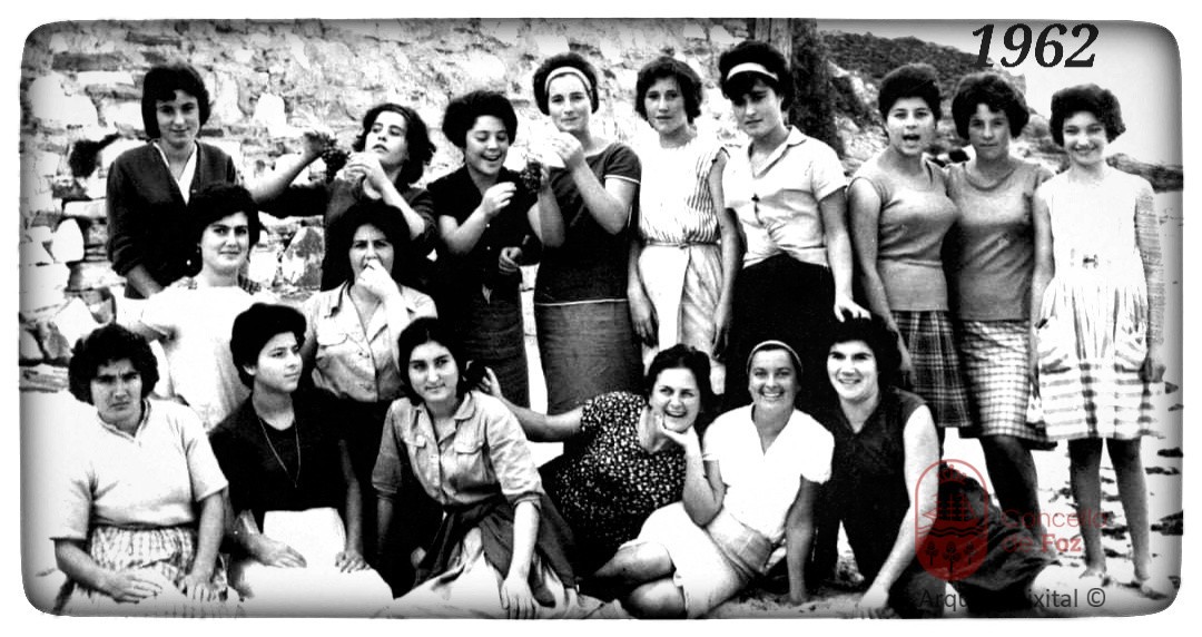 A terceira por arriba na esquerda: Amelia. Coa cinta na cabeza: Charito. As xemelgas do Chaiño. Sentada á esquerda Marina. A terceira a filla do Nieto. Sentada de branco á dereita, Raquel.