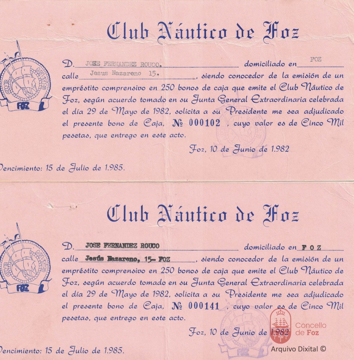 Creáronse como un xeito de préstamo dos socios para as obras de acondicionamento dos locais da antiga fábrica de salazón da Ribeira, cedidos ao Clube Náutico no mesmo ano.