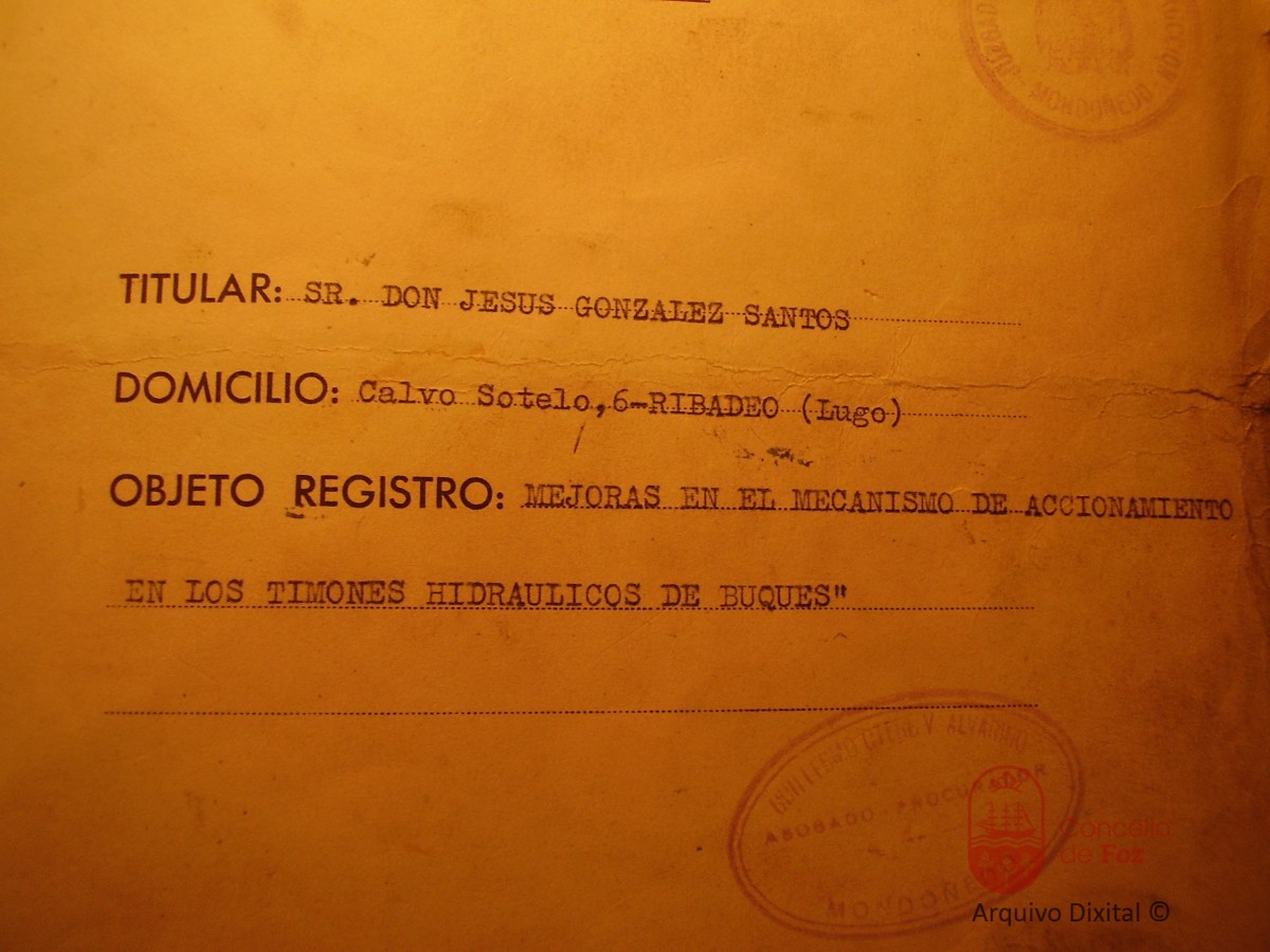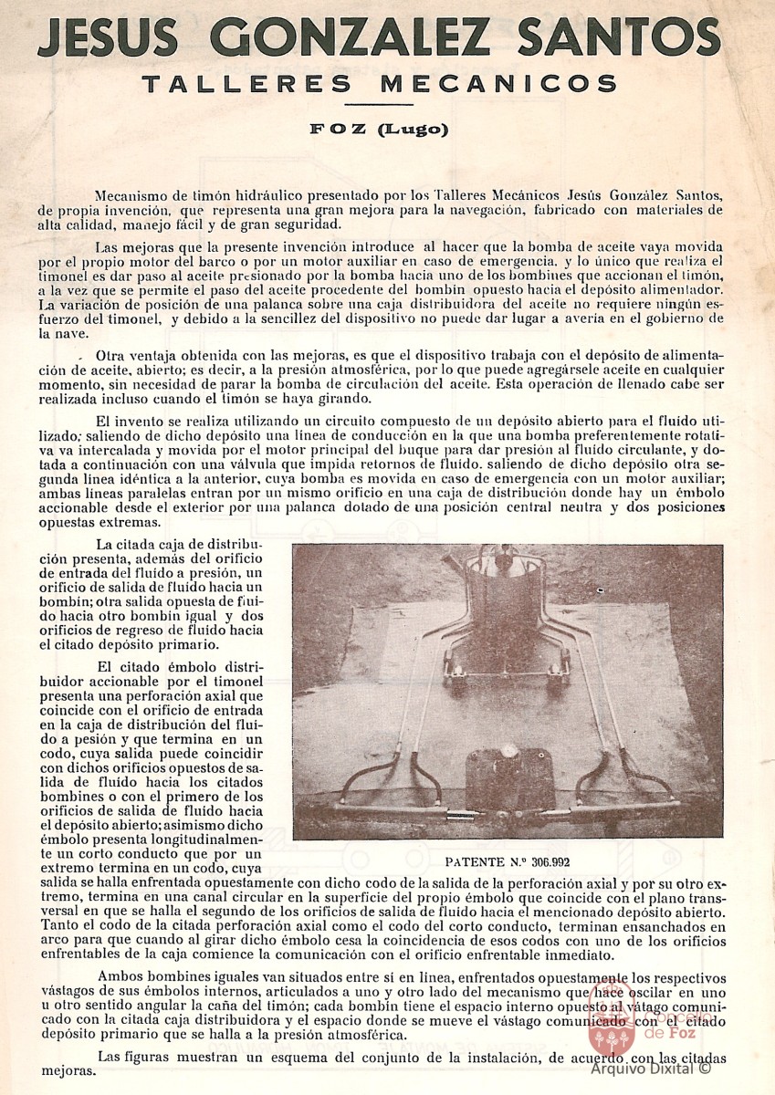 Timón hidráulico patentado por Dn. Jesús González Santos.