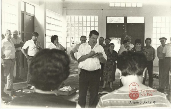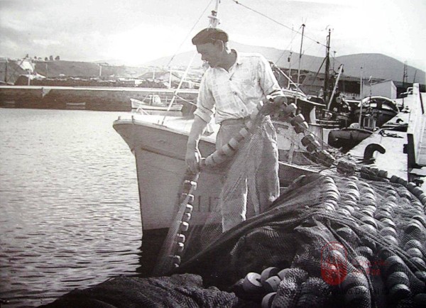 Xosé de Socorro rulando na lonxa. Os homes e o mar