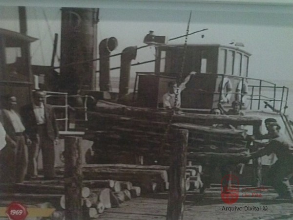 Cargando madeira nun barco de cabotaxe. Os homes e o mar