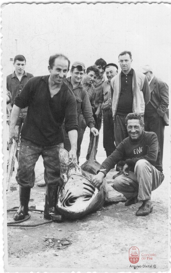 Tiburón peregrino capturado pola Santa Ana. Os homes e o mar